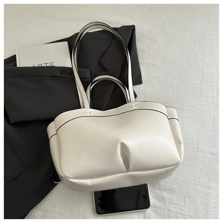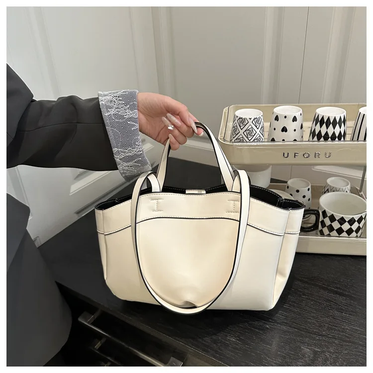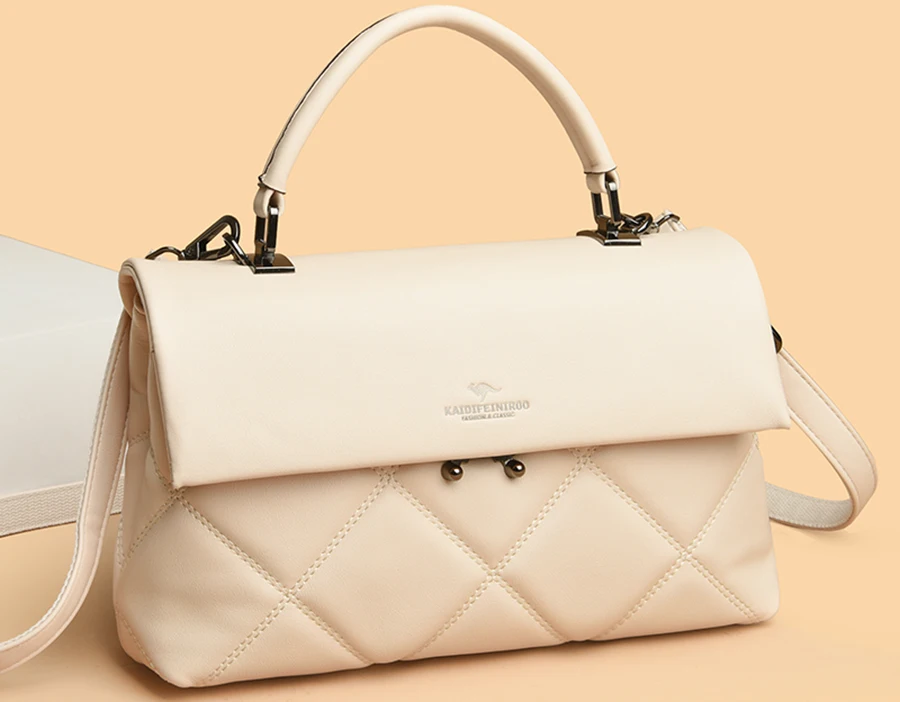 - جلد ناعم - مثل الخارج: مصنوعة من مواد عالية الجودة مثل الجلد، وتتميز الحقيبة بلمسة نهائية ناعمة ومصقولة.فهو يحاكي شكل ومظهر الجلد الطبيعي، ويوفر جمالية راقية وبسعر في المتناول.اللون الأبيض الفاتح خالٍ من الزمن وسهل تنسيقه مع الملابس المختلفة.